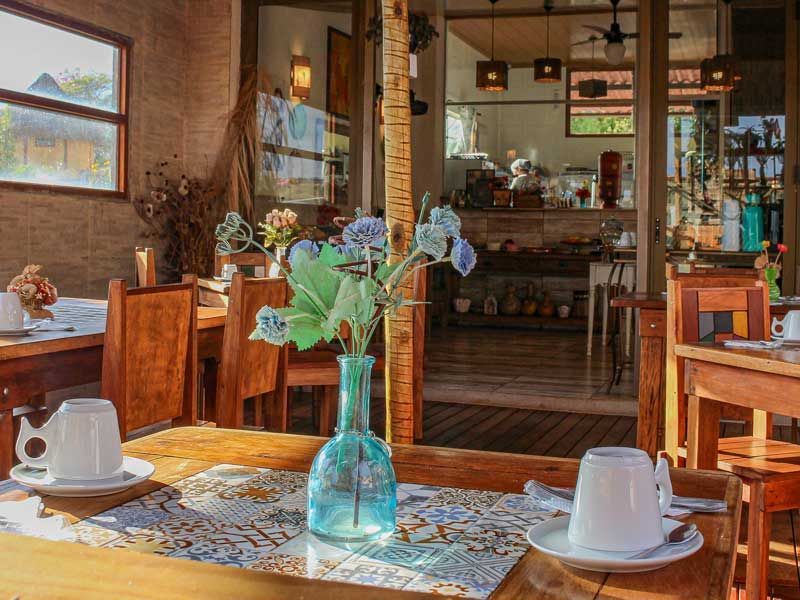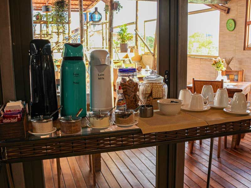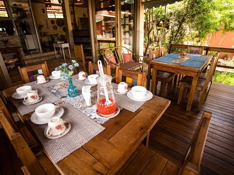 A nossa área do café-da-manhã por sí só já é um diferencial, está em espaço amplo e harmonicamente decorado, combinando o nosso deck, lounge e mirante observatório. Três espaços distintos com muito conforto e uma vista que refresca e dá energia para começar um dia de descobertas pela Chapada um grande diferencial que os hóspedes amam.